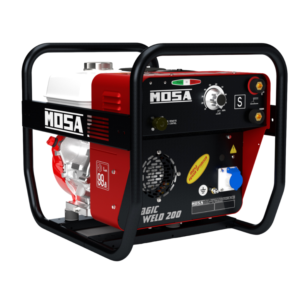 Mosa Magic Weld, The Engine Driven Welder is a block with an engine, an aluminium casting and a front panel. Inside the casting there are all electrical components of the machine: a permanent magnet alternator, a high frequency chopper diode bridge, an electronic control board and an electromagnet.